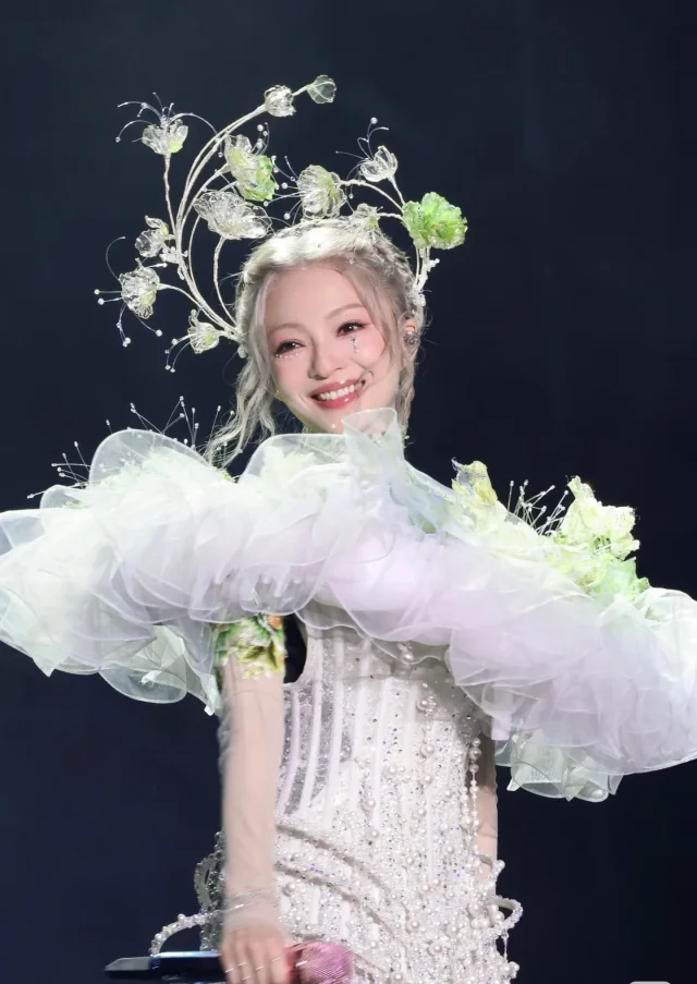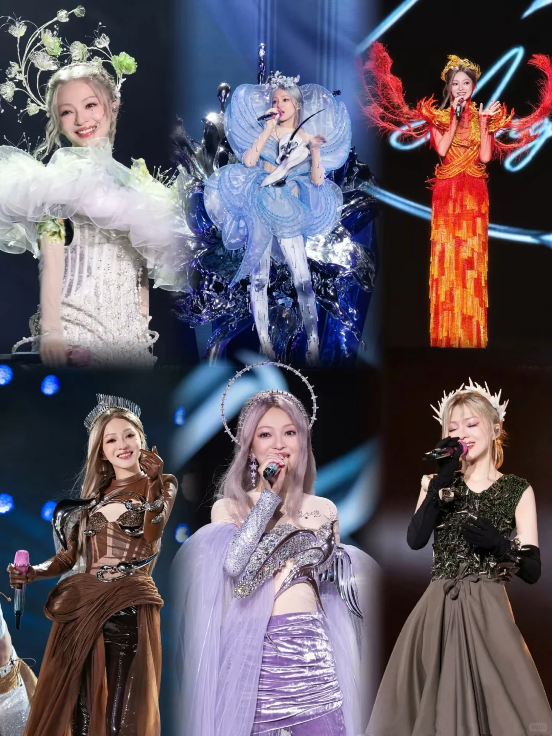 爆火的程度从她的演唱会服装从无瓶颈就能看出来,各种高定,专门定制上身,堪称视觉盛宴。