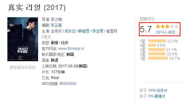 在韩国主流电影评分网站naver上的评分只有:4.48(满分10)。