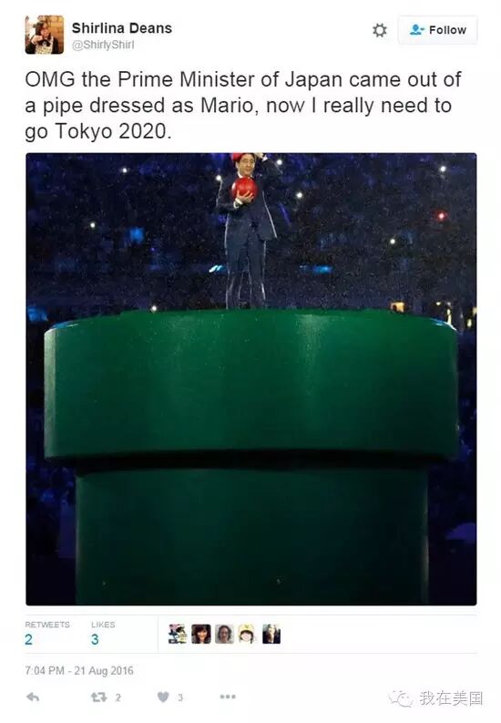 接着,为了准时到达里约奥运会闭幕式,首相竟然变...变成了马里奥...