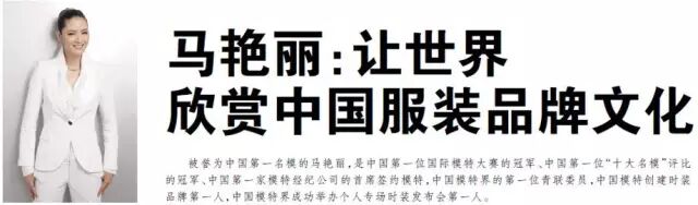 作为一名运动员,马艳丽是运动场上的佼佼者;作为一名模特,马艳丽是T型台上耀眼的明星;作为一名时装设计师,马艳丽是时尚界的天后级人物。她的人生经历,堪比传奇。