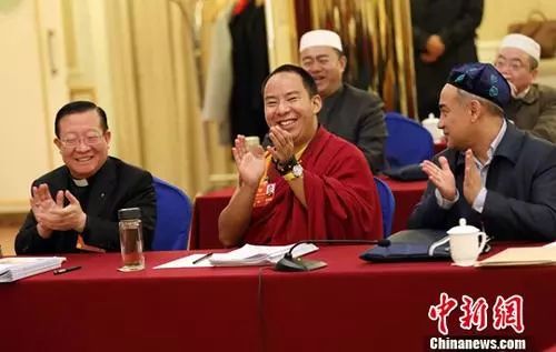全国政协委员、中国佛教协会副会长班禅额尔德尼·确吉杰布表示,佛教是外来宗教中国化较成功的例子。宗教在中国化进程中要和中华文化相融合,更要和中国特色社会主义社会相适应。他建议,进一步挖掘佛经中与社会主义核心价值观相一致的内容;在遵守国家宪法法律的基础上,开展寺庙管理、讲经传法等工作。