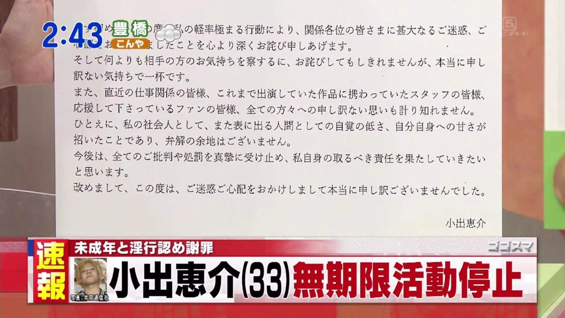 小出的道歉文里写到: