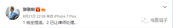 当然,郭敬明的回复也是简单有力,一切交给法律处理。