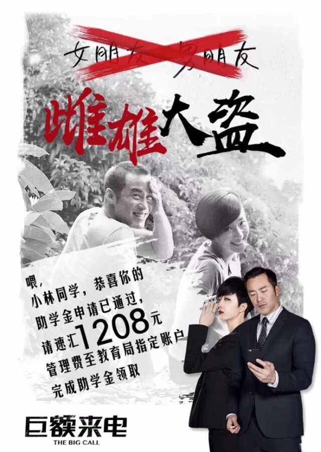 近日,电影《巨额来电》发布了一张“雌雄大盗”版演员海报。