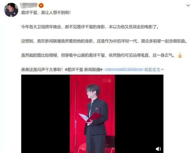 虽然新闻联播的镜头只是一晃而过,可粉丝们的火眼金睛很快就发现了易烊千玺。