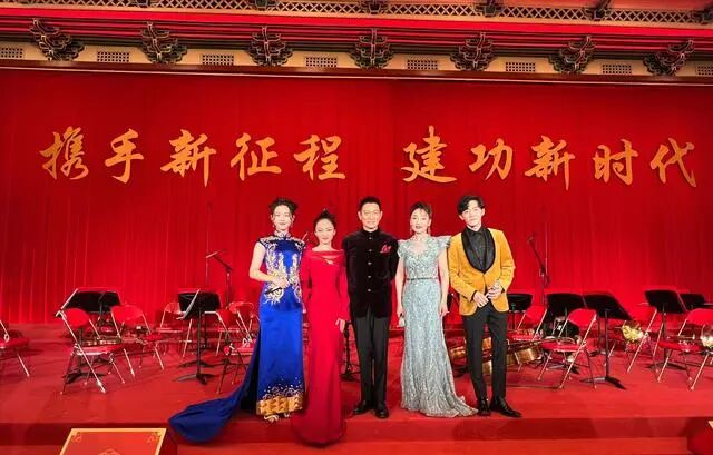 表演的间隙,张韶涵也没歇着,与一同演出的演员们一起拍了好多合照,这其中就包括了我国著名的男高音歌唱家石倚洁。