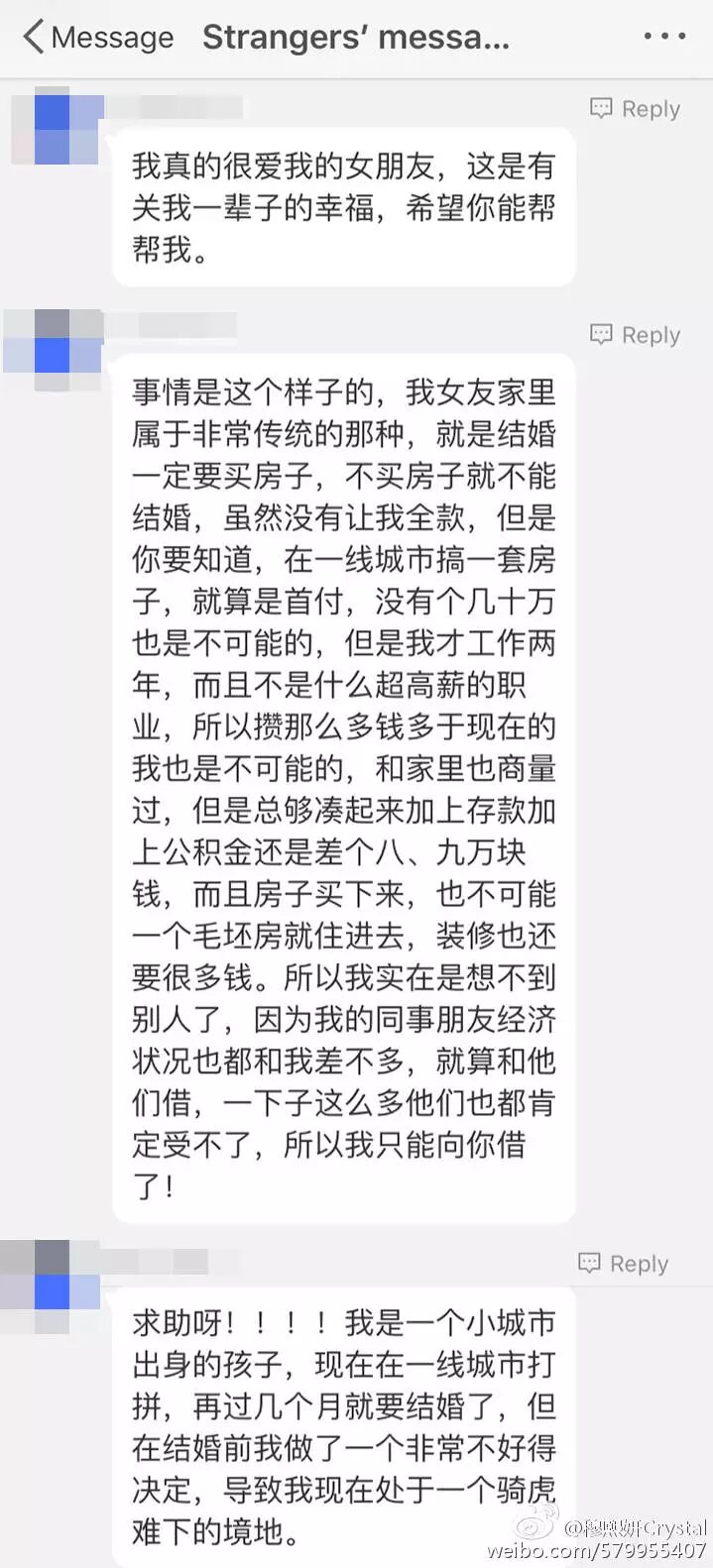 而这个“有钱”更是被一些网友看上了。之前在微博上,穆熙妍就收到很多网友问她借钱的离谱留言: