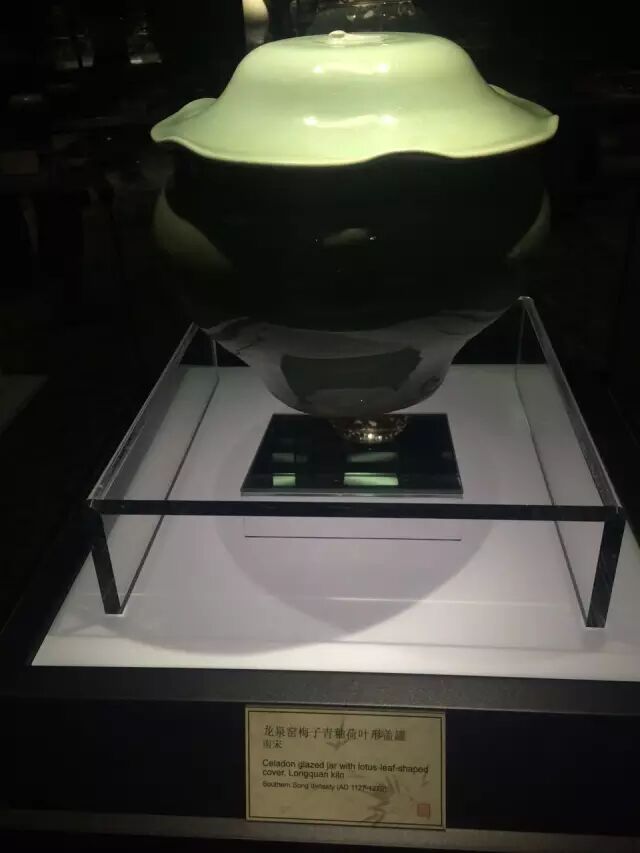 瓷器馆,著名的龙泉窑梅子青釉荷叶形盖罐