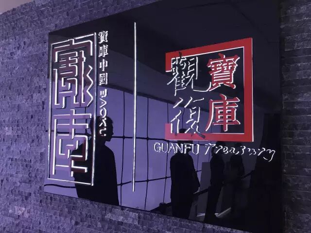 到了观复宝库,黑底红字的LOGO颇有气势。