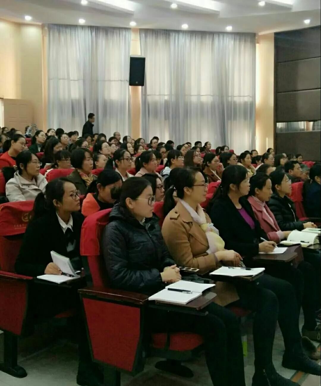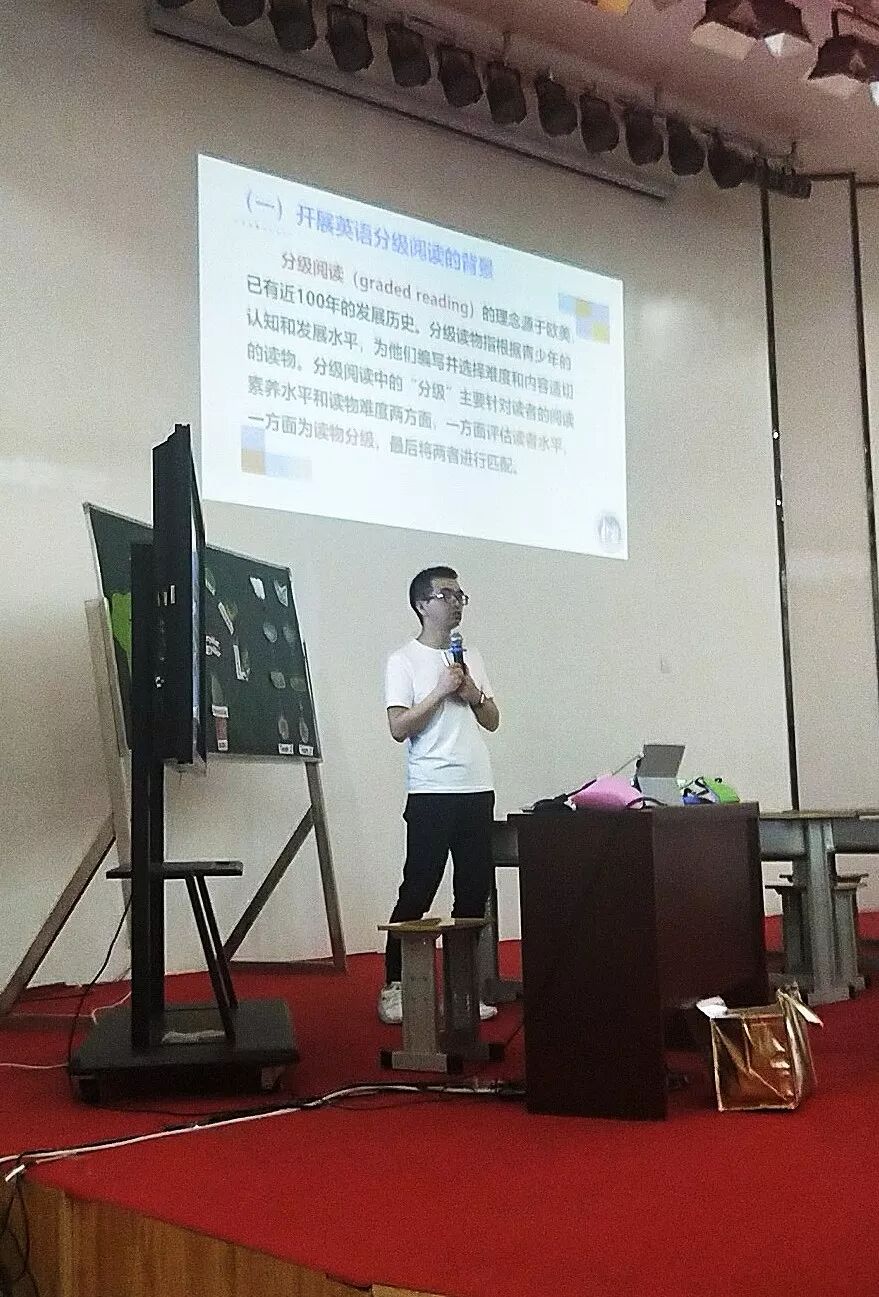 Pan Xiaoping, an expert on English teaching , made a lecture on the training of teaching materials for theteachers of the conference.