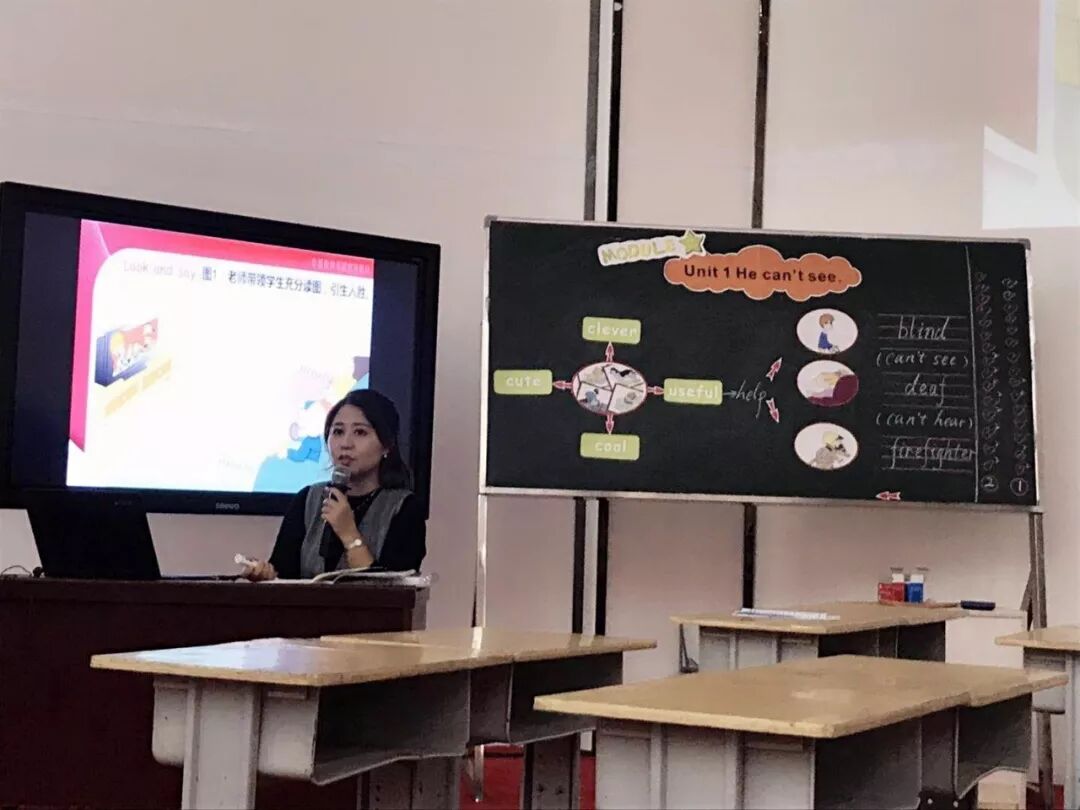 Ye Bei excellently completed theexcellent lesson presentation of Module 7 Unit1. With her beautiful voice,sweet smile, clear teaching process and exquisite blackboard writing, more than300 primary school English teachers attended the meeting were deeply impressed.