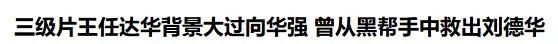 更传言任达华当初从东北黑帮手里救下刘德华,在银河映像踩过界事件里救了杜琪峰。