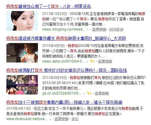 2002年10月,杨恭如与朋友正在香港铜锣湾一家高级餐厅用餐,却被一位妇人当众扇了一个耳光,这位妇人是某富商老婆,因为杨恭如与这名富商有感情牵扯,才会对杨恭如动手。时隔多年,杨恭如提起这件往事,感叹道:“与他(该富商)交往了9个月,他从来没有说自己有老婆,这之后我对感情再也无法相信了。”