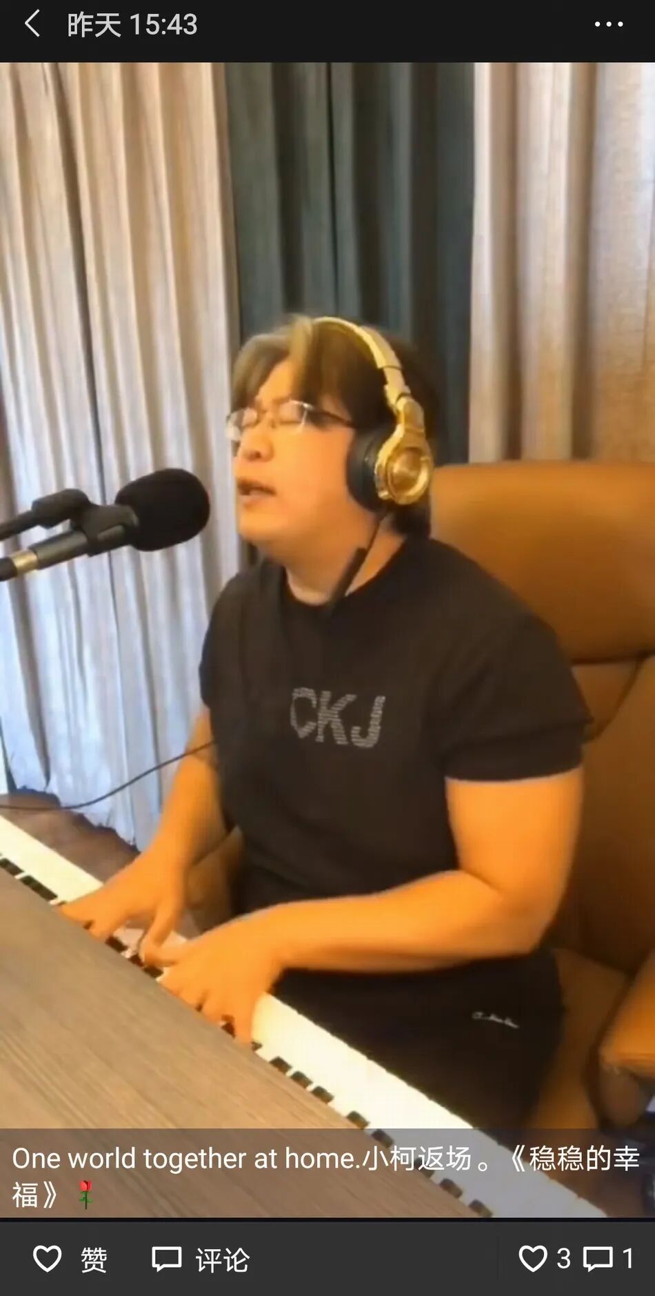 03:16,老狼在朋友圈中开唱。视频和截屏照片来自老狼的微信朋友圈(00:16)