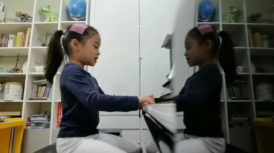 梅婷的女儿快快弹奏《欢乐颂》,她可能是本次自发活动中最年轻的参与者。
