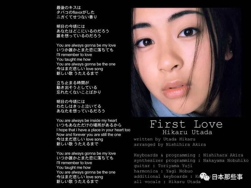 想当年《First Love》是real火啊!16岁的宇多田光凭借着这张专辑获得了空前的成功。公信榜在榜时间85周、当年销量突破765万张。(达到了公信榜40几年来的销量顶点)。《First Love》同时也是全亚洲销量最高的专辑,全球销量总计约一千万张。