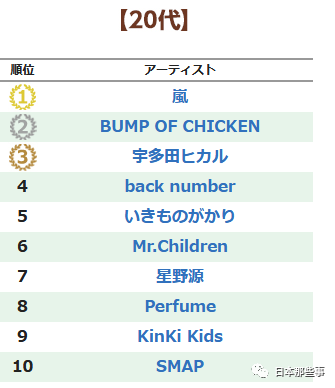 时隔八年!终结了岚7连霸的神话,Mr.Children终于重回第一的宝座啦!在过去13次的排行榜中,次次都能够入围top5,Mr.Children的实力和人气大家是有目共睹的!特别是今年,Mr.Children不仅收获到了很多年轻学生的喜爱,就连在30代到40代成人的选择中,也是获得了第二位的好成绩!