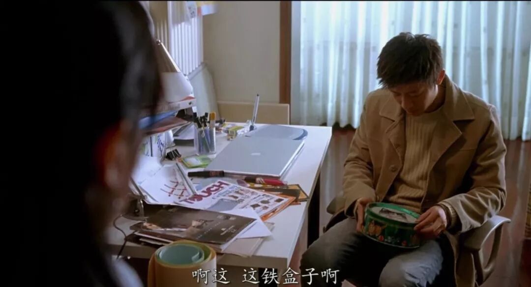 电影里用了很多小细节去表达李静对陈文的爱,李静卧室里的小铁盒里放着各种杂七杂八的小玩意。