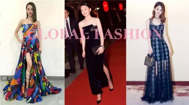 Jolin的这条彩色礼服裙华丽复杂,如果没有那道开衩的设计其实并不适合小个子的女生~正是这个开衩的设计拉伸了腿长,搭配缠绕款的高跟凉鞋,气势一米八!▼