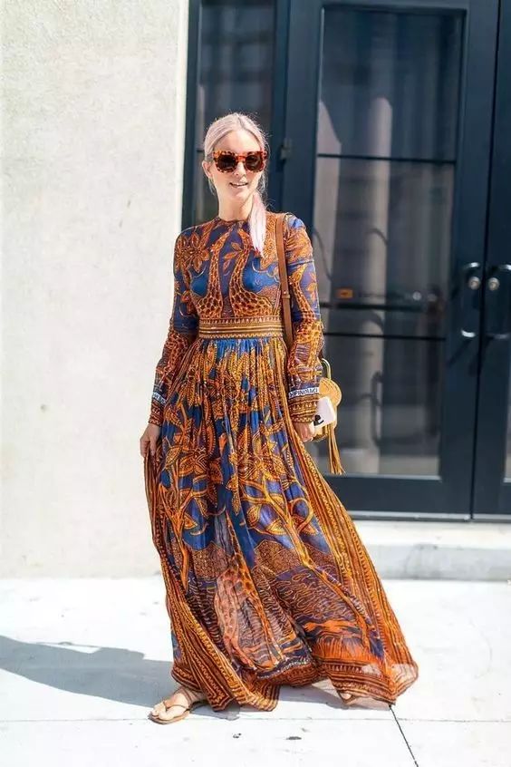 喜欢民族风的妹纸可以选择V领印花长裙,带有异国风格噢~▼