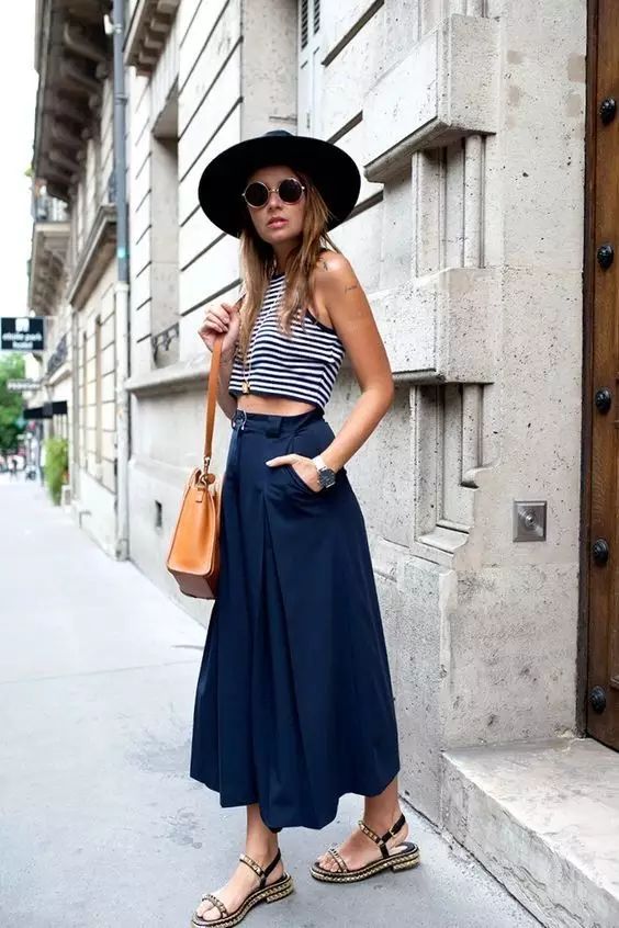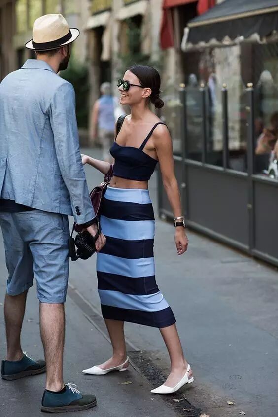 紧身的上衣搭配高腰裙,记得一定要把上衣的下摆塞进裙子里~明朗腰线拉伸腿长~▼