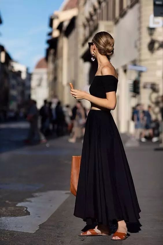 露肩收腰长裙款满满的女神气质~搭配绑带凉鞋,绝对是夏季出游的必选LOOK之一!▼