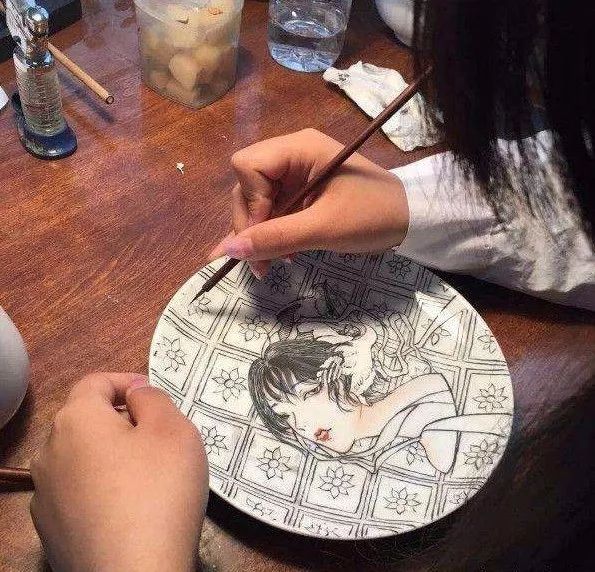 一个瓷盘,一支笔