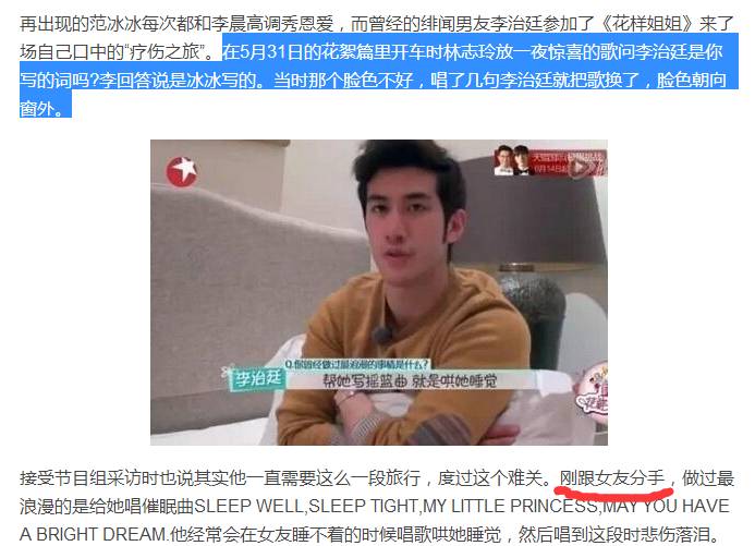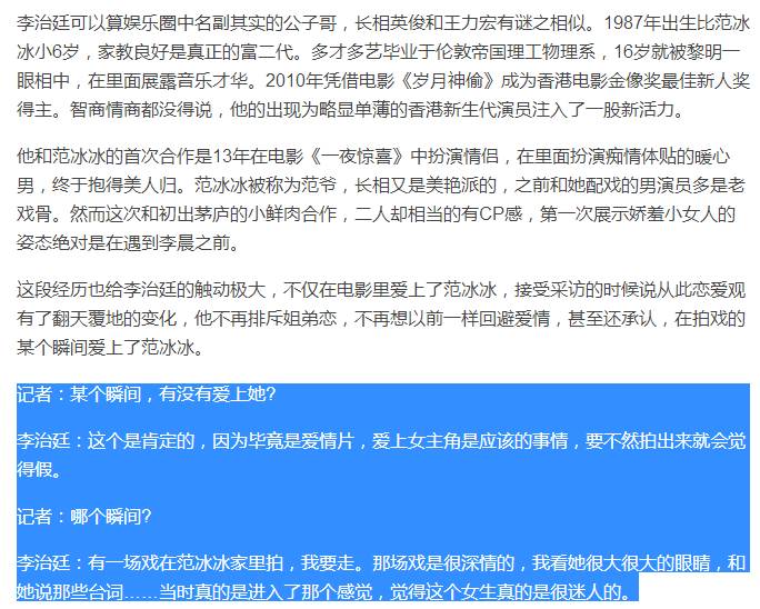 牙牙顺着找到了一些资料……在《一夜惊喜》后就李治廷就曾向记者“隔空表白过”