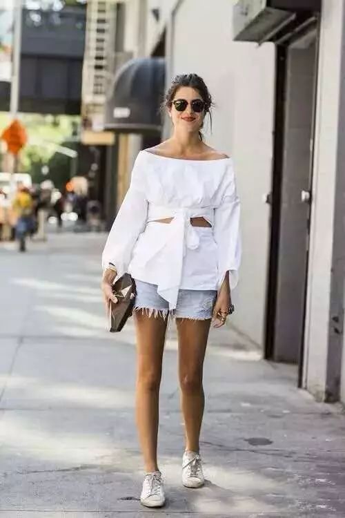 一双小白鞋让整体造型更加休闲高街