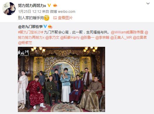 拍《老九门》的时候正赶上霸王级寒潮来袭,于是绵羊兴的暖手宝总不离身,后来诸葛兄发现这孩子过冬基本就靠一只狗啊!