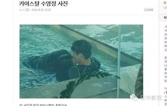 有网友爆出Krystal与Kai在饭店泳池接吻的照片