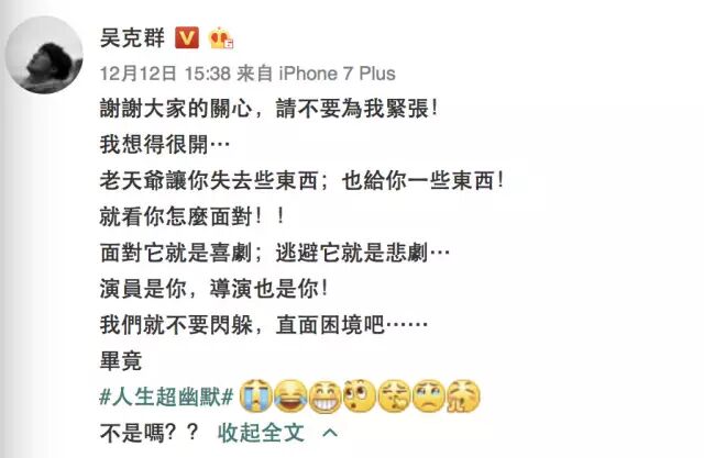 吴克群的新歌叫《人生超幽默》。