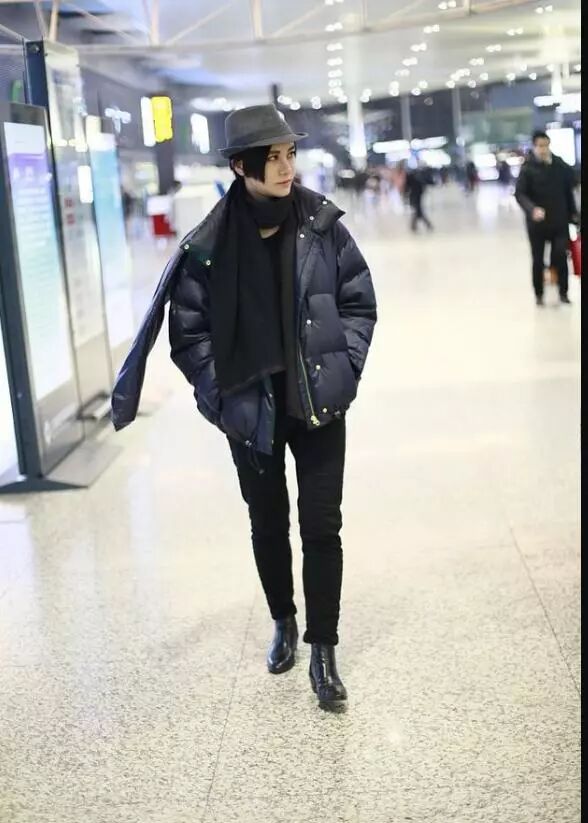 藏蓝色的羽绒服搭配黑色的长裤很简约,充满中性风的韵味。搭配黑色的短靴气场十足很是帅气。喜欢的宝宝可以尝试哦。