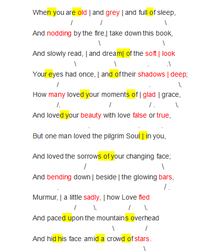 【这两句我差点没读明白,其实应该是连起来: how Love fled and paced upon the mountains overhead;and hid his face amid a crowd of stars. 就是说,Love 是主语,后面的都是他的宾语,Love fled; Love paced upon the mountains overhead, love hid his face amid a crowd of stars 就是说爱是多么易逝,爱,匆匆在头顶的山上踱着步,然后隐匿在纷繁的星空里。pace不是缓缓的,是说小块步啊】
