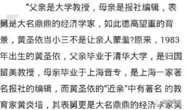 出身书香世家的黄圣依更是把才华都用在了澄清绯闻上,微博澄清小三说:灯火阑珊莫名惆怅;从星女郎到解约门;官司胜又莫名小三;心中感恩星爷提携;感谢杨子一路拼搏。。。