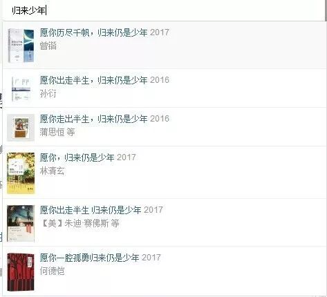 暂且不说内容,单是这个书名,就忍不住叫人吐槽。雷同程度好比学生时代的半命题作文:愿你____,归来仍是少年;烂俗程度可谓“你若安好,便是晴天”2.0版。