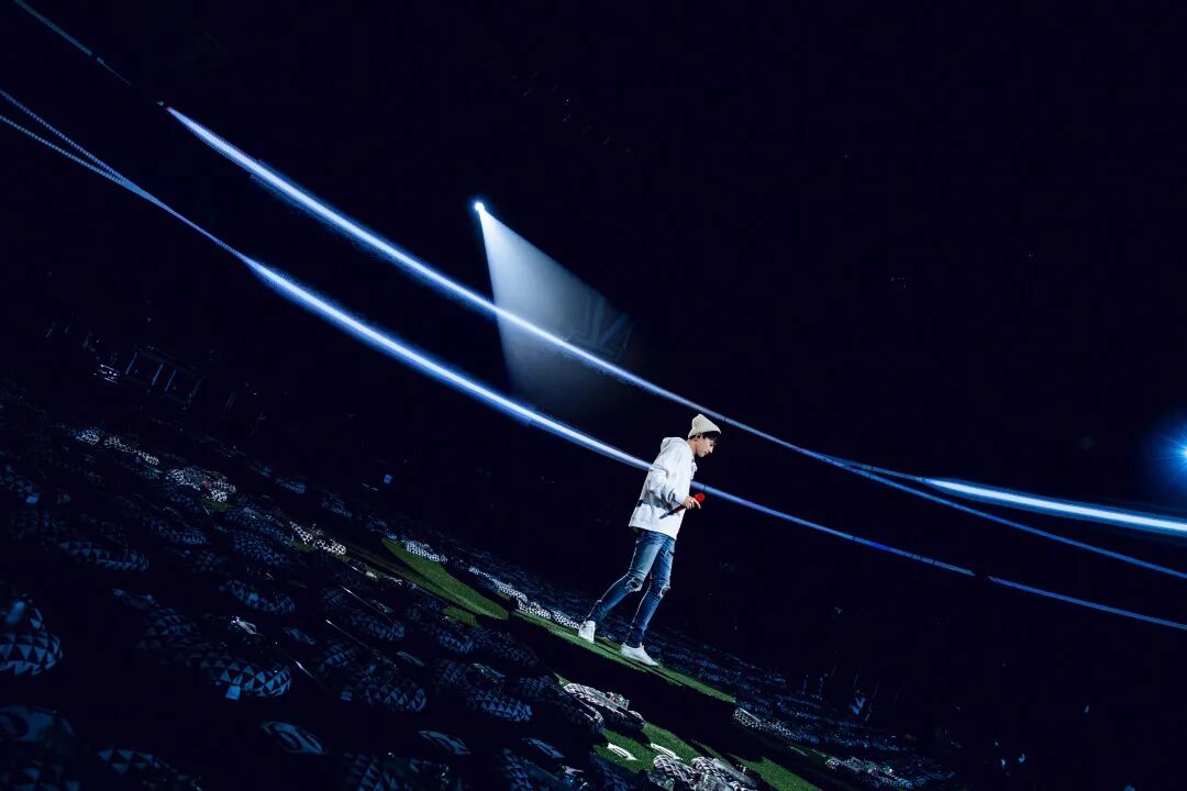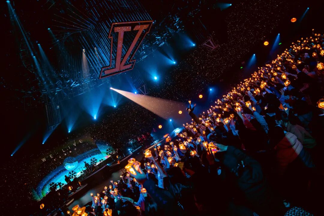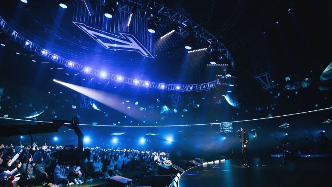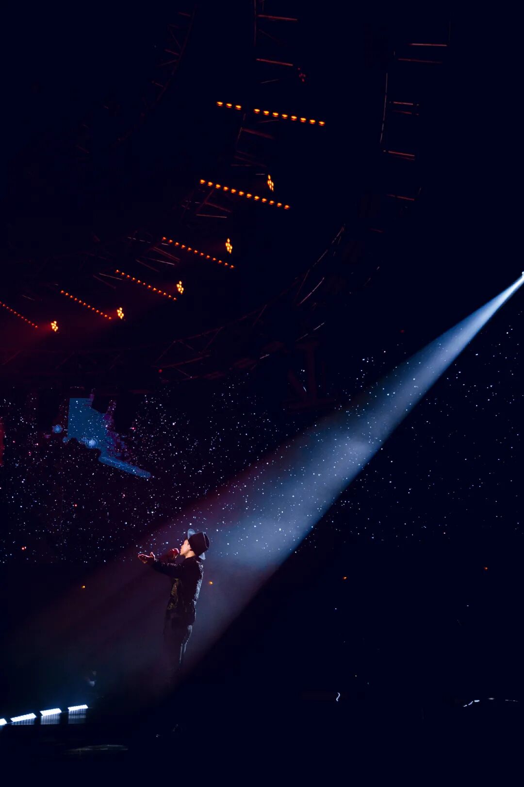 开始最初的想法是在歌剧院、剧场来用灯光凸显高级的质感。但是剧院舞台与观众之间的距离会打破整体温暖的感觉,很难在情感上突破你我共融的状态。最后,通过不断的讨论与推翻,将场地改到了棚里,以包裹式和沉浸式的氛围去连接他和歌迷之间的情感,就像演唱会主题WE·LIVE表达的“we·live”“we·love” “we·together”的含义那样。