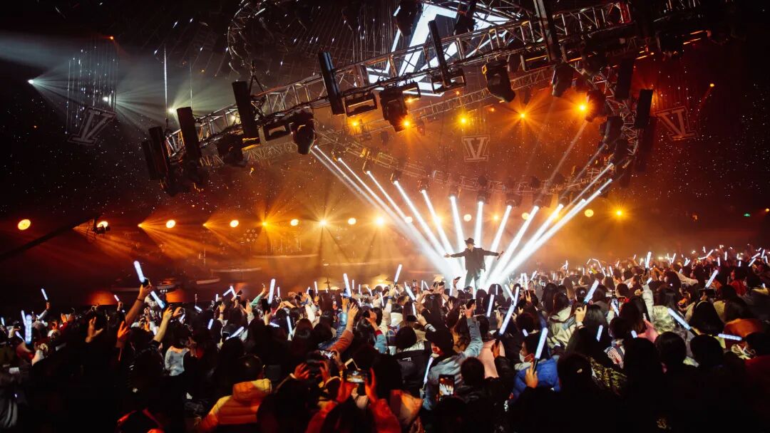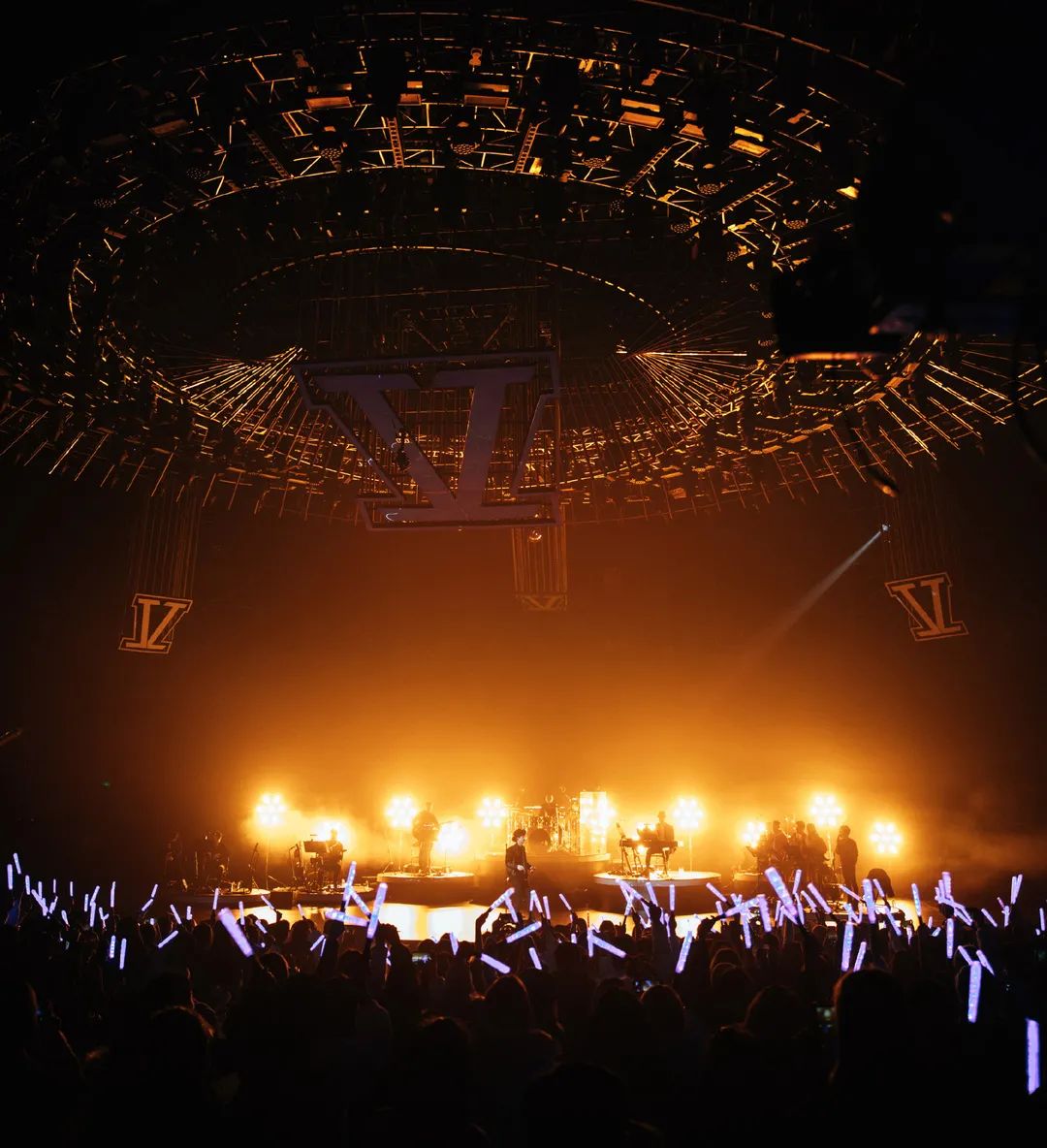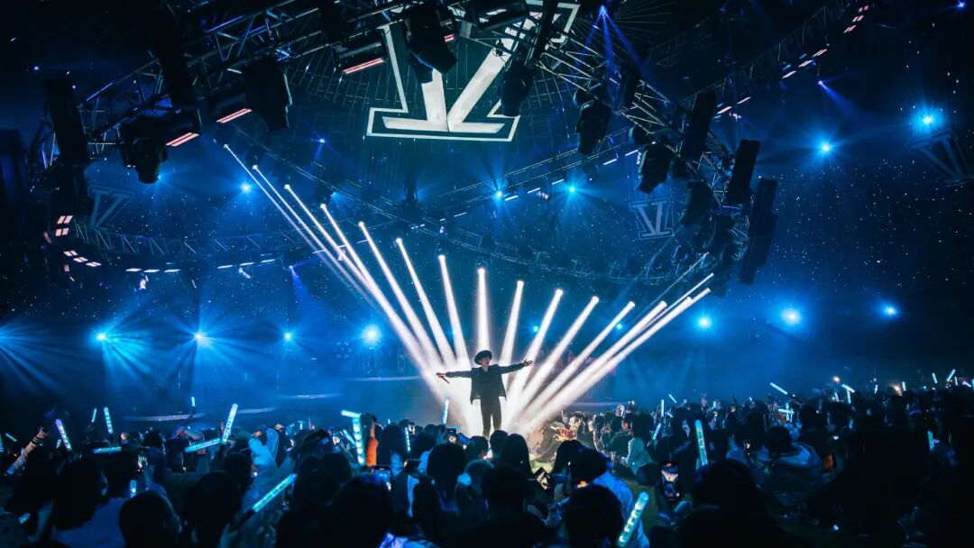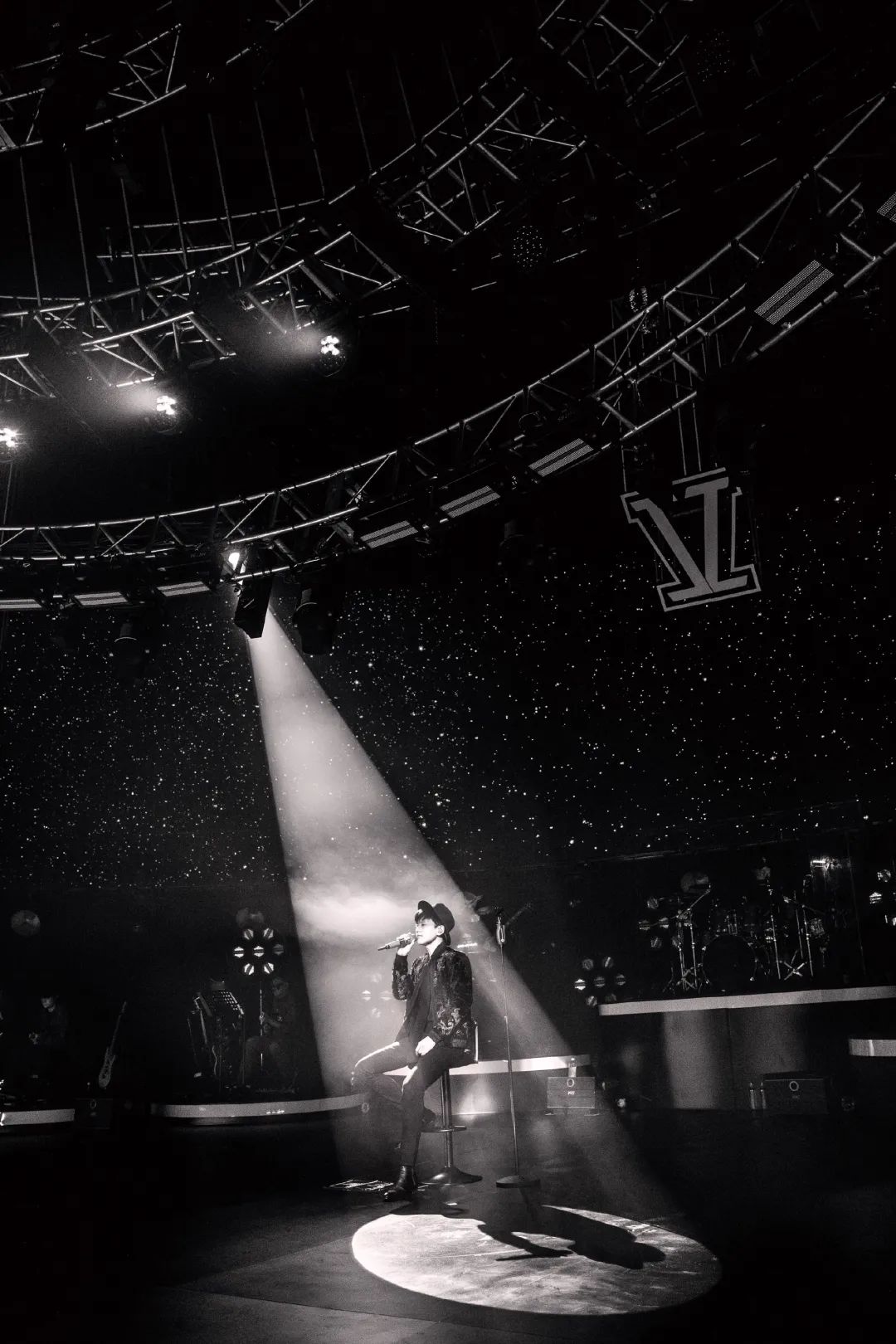 开始最初的想法是在歌剧院、剧场来用灯光凸显高级的质感。但是剧院舞台与观众之间的距离会打破整体温暖的感觉,很难在情感上突破你我共融的状态。最后,通过不断的讨论与推翻,将场地改到了棚里,以包裹式和沉浸式的氛围去连接他和歌迷之间的情感,就像演唱会主题WE·LIVE表达的“we·live”“we·love” “we·together”的含义那样。