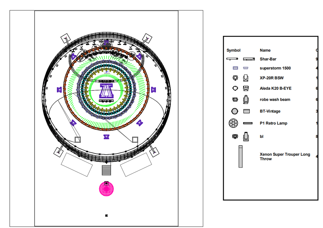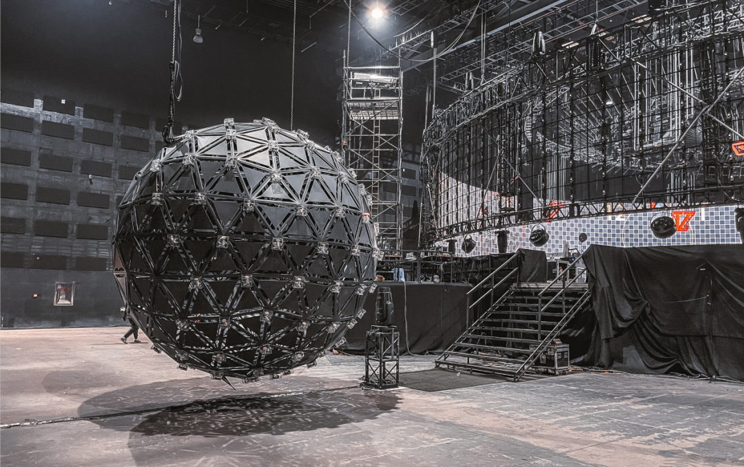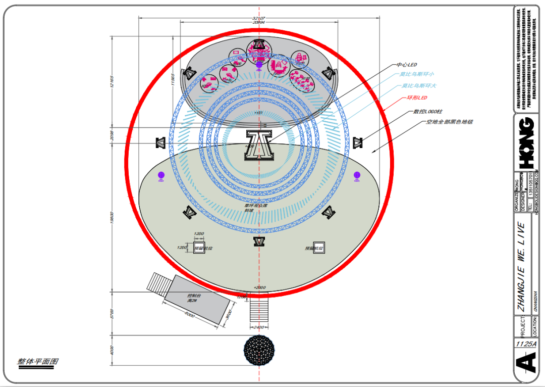 舞台中间的莫比乌斯环,和旁边的圆灯光truss的距离间距太小,每边的距离只有5公分,对编程的方式和系统的安全灵活性都是一个极大的挑战。场地负载62吨,实际已用到41吨,考虑到顶上所有的器材都是数控来控制,担心动荷载过大,还采用了最先进的悬停吊装数控系统,尽可能的让动荷载降至最低。