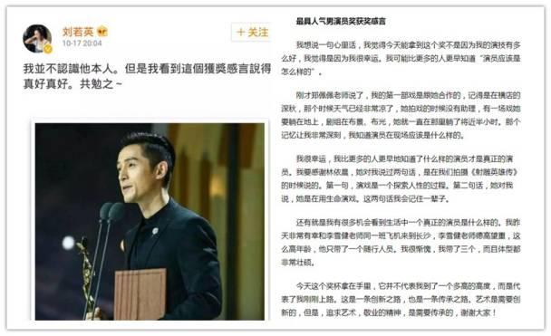 就连刘若英都转发了这段感言,表示被胡歌所感动。