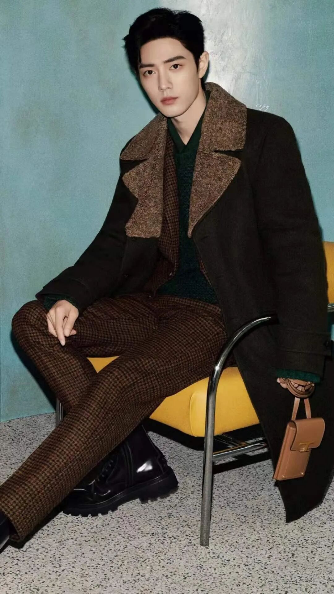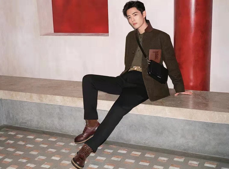 像肖战身上的这一套穿搭就是非常典型的相近色组合,并且在进行搭配的时候,服装设计上还加入了一些小细节。