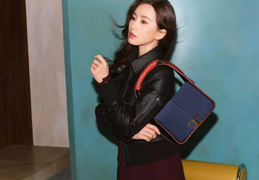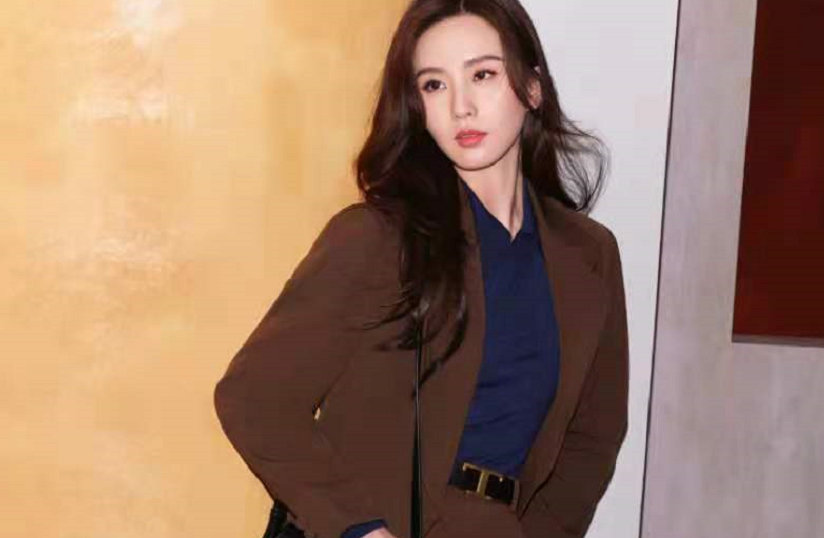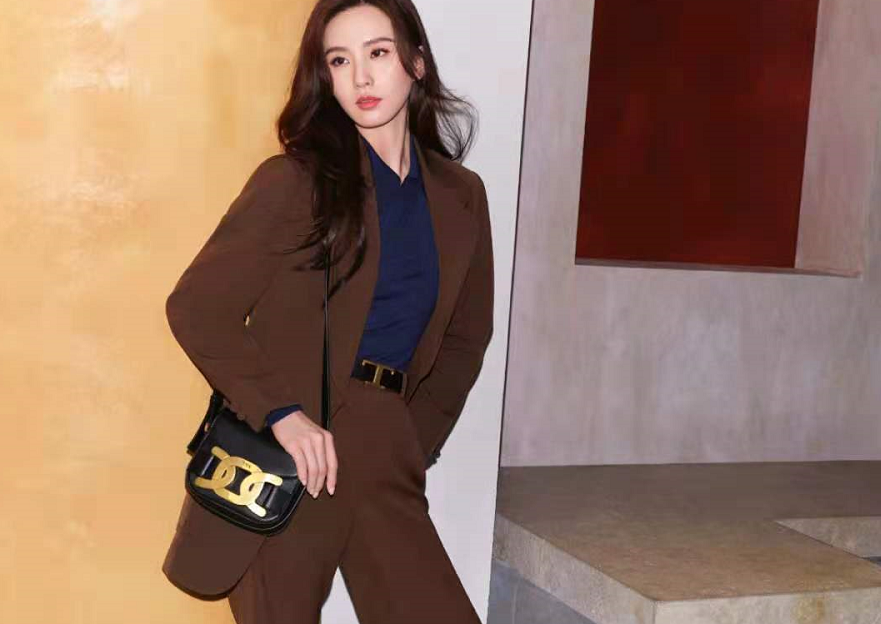 跟棕色进行搭配的时候,可以挑选同气质的色彩来进行互补,像刘诗诗身上的这一件深蓝色衬衫就非常适合。