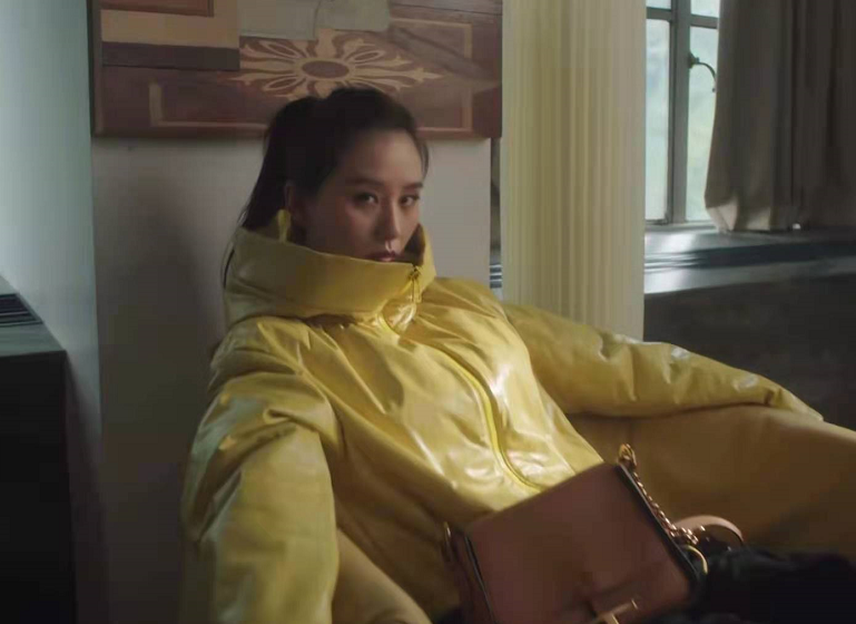 刘诗诗身上的这一件黄色羽绒服就非常的经典,整个色彩亮度虽高,但是饱和度却适中,所以不会产生刺眼的感觉,尤其是配合上带有非常明显反光感的皮质涂料后,让色彩看上去更加抢眼,而且短款的收腰设计与黑色高腰裤结合之后,还有利于打造活泼感,配合上高高扎起的大光明马尾,整体造型既保暖又充满了活力。