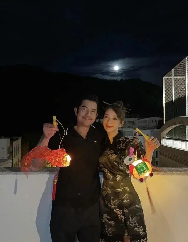 郭富城穿着黑色短袖,搭配黑色牛仔裤,踩着人字拖,一身穿搭很家居。55岁的他还留了胡子,笑起来成熟稳重,独具魅力。方媛则挑了一身旗袍,显得身材超好,头顶扎着丸子头,插着发簪,充满国风味道。夫妻俩选择黑色系穿搭过中秋,爱意满满。
