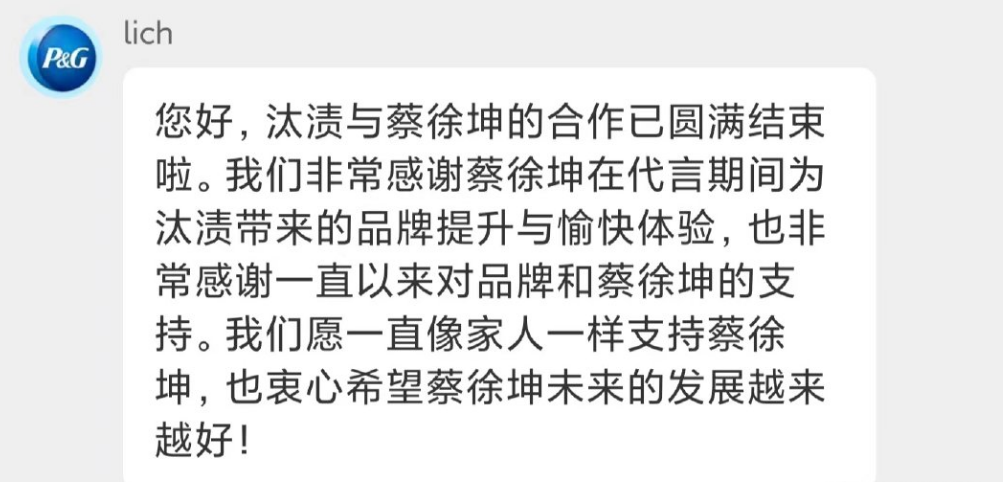 保洁官方旗舰店:汰渍与蔡徐坤的合作已圆满结束