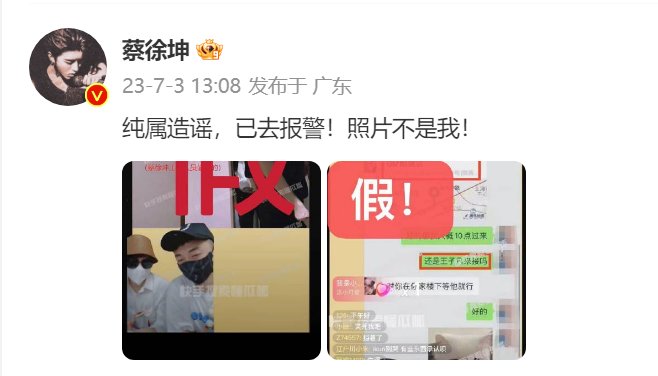 这次直播还没结束,蔡徐坤就已经找到了假图的漏洞,在前往警察局的路上了。