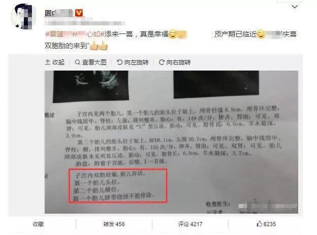 我得知此消息时也是十分的为他们开心啊,如果怀的是一个男孩那就更好了,刚好凑成一个好字。不过现在心如姐也有43岁高龄了,已经列入高龄产妇的行列了,希望老霍一定要好好照顾她们啊,祝母子平安。
