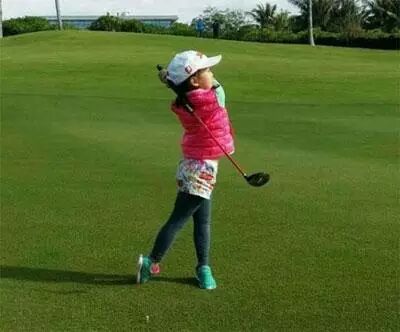 除此之外,她还会玩儿高尔夫,应该是爸爸教的吧。穿着小马甲,带着棒球帽,小球杆一挥,还真的是很像那么回事呢。