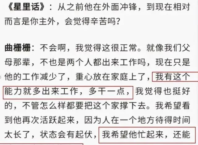 老公黄海波一蹶不振,曲栅栅甚至说过,他就想孩子一样,需要她养。