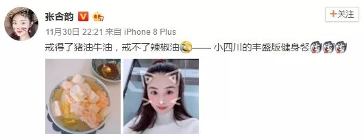 在坛子的印象中,张含韵的名字总是和减肥挂在一起的,而难为她又是从四川走出去的吃货,所以微博里不是在晒减肥餐,就是在晒好吃的,